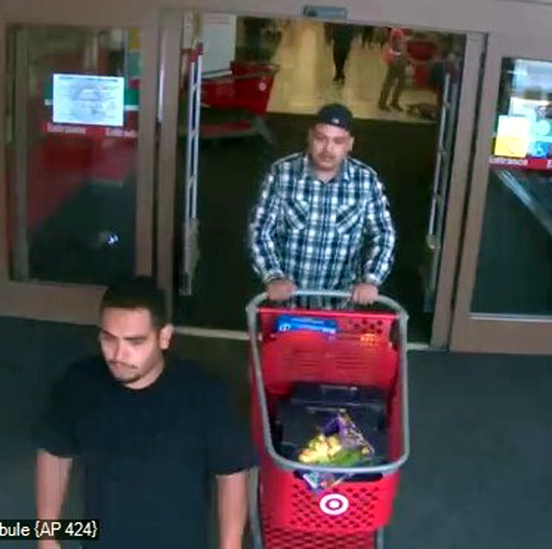 One of the pictured individuals took three X Box 500 GB game systems valued at $400 each and placed them in a shopping cart. Both individuals then walked past all open registers making no attempt to pay for the game systems in the shopping cart and exited the store.