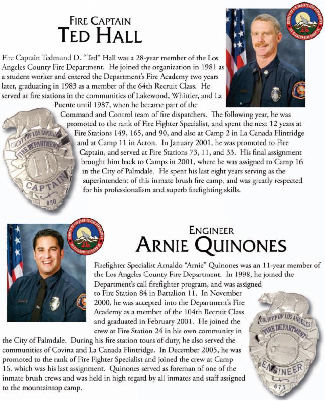 Today in SCV History: August 30, 2009 L.A. County Fire Capt. Ted Hall, 47, and Firefighter Specialist Arnie Quinones, 34, are killed in the line of duty on Day 4 of the Station Fire.