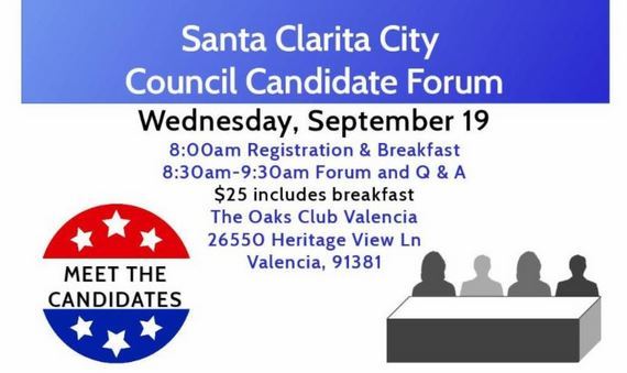 Local voters will get the chance to meet and hear the 15 qualified candidates vying for three City Council seats in the Nov. 6 election during a candidate forum and Q&A session at The Oaks Club Valencia on Wednesday, Sept. 19.