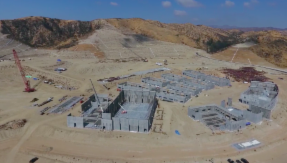 Sept. 20, 2017 - Made on location, the classroom walls have been tilted into position as Castaic High School begins to take shape at the top of Romero Canyon. Drone video by Randy Wrage, Spirit Properties.