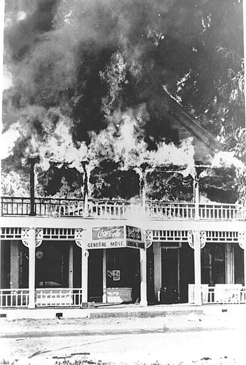Acton Hotel, est. 1890, burns down; arson is suspected.