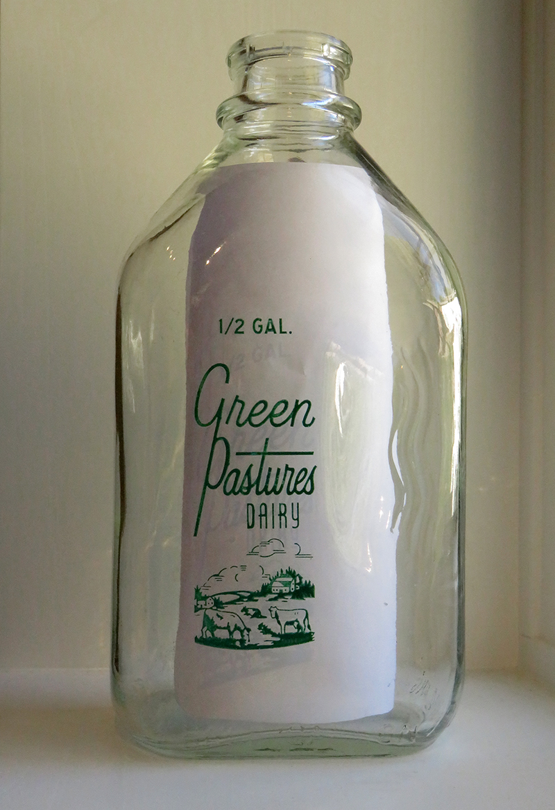 Half-gallon milk bottle from Green Pastures Dairy Farm at 27397 Bouquet Canyon Road - the future site of Saugus High School and the surrounding subdivision.