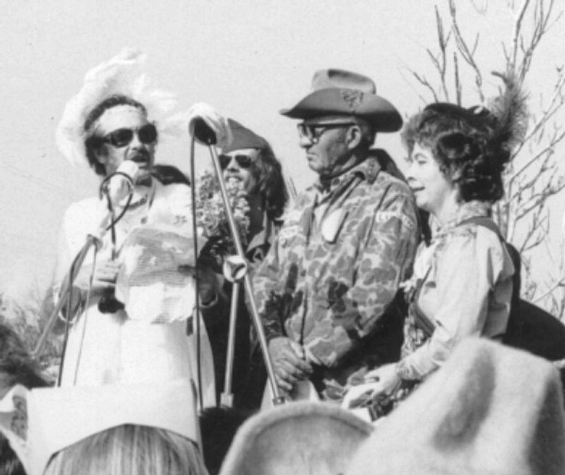 Horse turds and peace pipes: Acton Turkey War with AM radio jock Dick Whittington ends in a draw. (Yes, that's the future Santa Clarita Mayor Jo Anne Darcy on the right.)