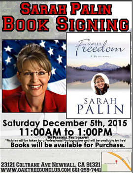 Sarah Palin to Host Book Signing in SCV Today