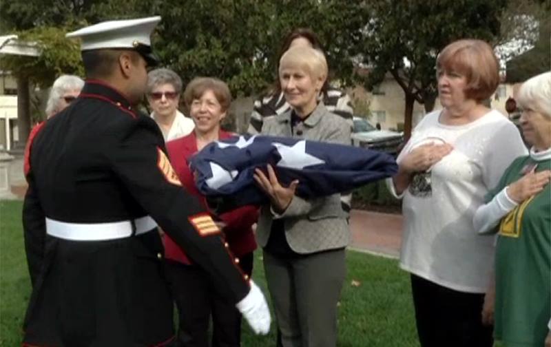 A 10x25-foot American flag that was marched down the streets of Newhall