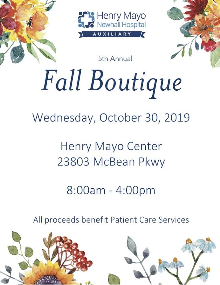 Oct. 30: Henry Mayo Newhall Hospital Auxiliary Fall Boutique
