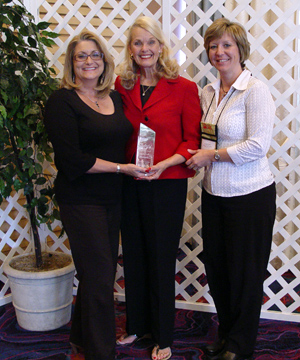 From left: Dianne Stewart, the college's dean of early childhood education and training programs; Dr. Dianne G. Van Hook, college Chancellor; and Leslie Carr, the college's director of professional development programs, are all smiles shortly after receiving the North American Council for Staff, Program and Organizational Development (NCSPOD) Innovation Award presented to College of the Canyons.