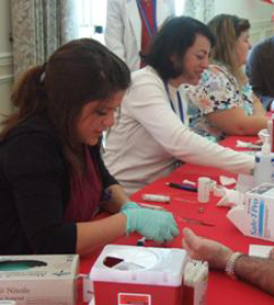 Henry Mayo staff members, Johanna C., Nina F., and Laura C., provide free health screenings, including cholesterol and glucose, during the "Care for Your Heart" health fair held last February. The next heart health fair will be December 12 at the Santa Clarita Community Center in Newhall.