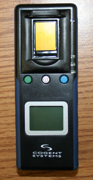 About BlueCheck BlueCheck is a Bluetooth-enabled mobile fingerprint scanner for law enforcement applications. Weighing only 3 ounces, the BlueCheck is equipped with a durable LCD display for real-time feedback, a 500 dpi fingerprint sensor, and Cogent's SecurASIC technology for embedded encryption, image compression, and on-device matching. Used with Cogent's MobileID (TM) and Web ID(TM) applications, BlueCheck allows users to quickly and easily perform in-the-field fingerprint capture and identifications. Using Bluetooth communication, BlueCheck can remotely transfer secure captured fingerprint data to any COTS Bluetooth-enabled PDA, laptop, or BlackBerry device. This modular feature enables law enforcement agencies to configure the use of BlueCheck with their existing equipment and infrastructure. With Cogent's BlueCheck host applications, the host device can submit ANSI/NIST format files via SMTP or FTP to a remote server, or to a statewide Automated Fingerprint Identification System (AFIS). BlueCheck receives the search results from the host and displays the results on its LCD display, providing timely and accurate information for law enforcement personnel.