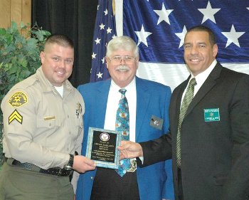 Rick Dalton (center) of the Santa Clarita Elks Lodge presented the award to Deputy Darland (left). Captain Anthony La Berge (right) attended the event and described Deputy Darland as a hard working deputy who puts the protection and preservation of his community at the top of his priorities.